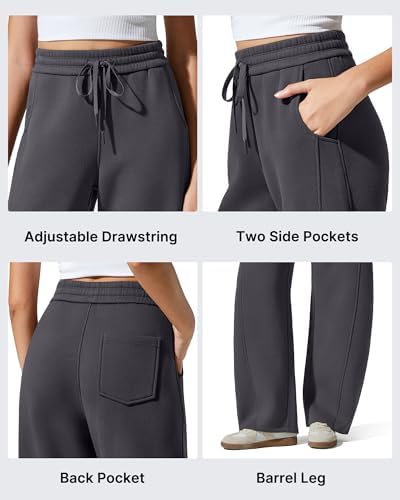 G4Free Barrel Sweatpants Women Fleece Lined Cotton Yoga Pants with Pockets Thermal Wied Leg Pants Winter Clothing(Dark Gray,M,31″) : Clothing, Shoes & Jewelry