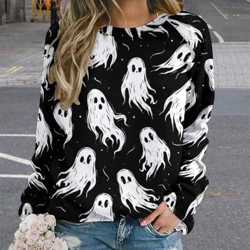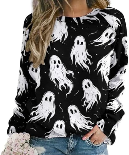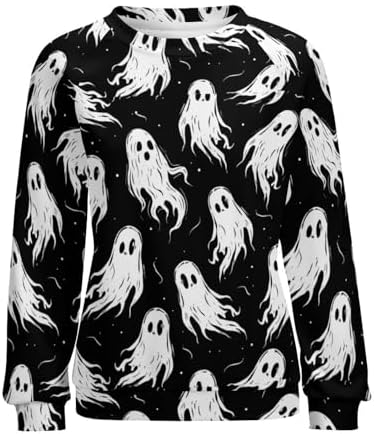 ZOCAVIA Women’s Western Aztec Sweatshirts Fashion Casual Vintage Ethnic Graphic Crewneck Long Sleeve Pullover Tops Fall Winter Country Cowboy Y2K T Shirts Oversized Halloween Ghost White Black 3XL : Clothing, Shoes & Jewelry